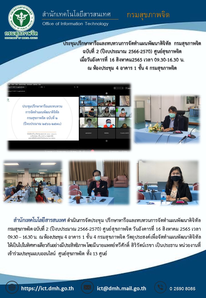 ประชุมปรึกษาหารือและทบทวนการจัดทำแผนพัฒนาดิจิทัล กรมสุขภาพจิต ฉบับที่ 2 (ศูนย์สุขภาพจิต) photos and movies