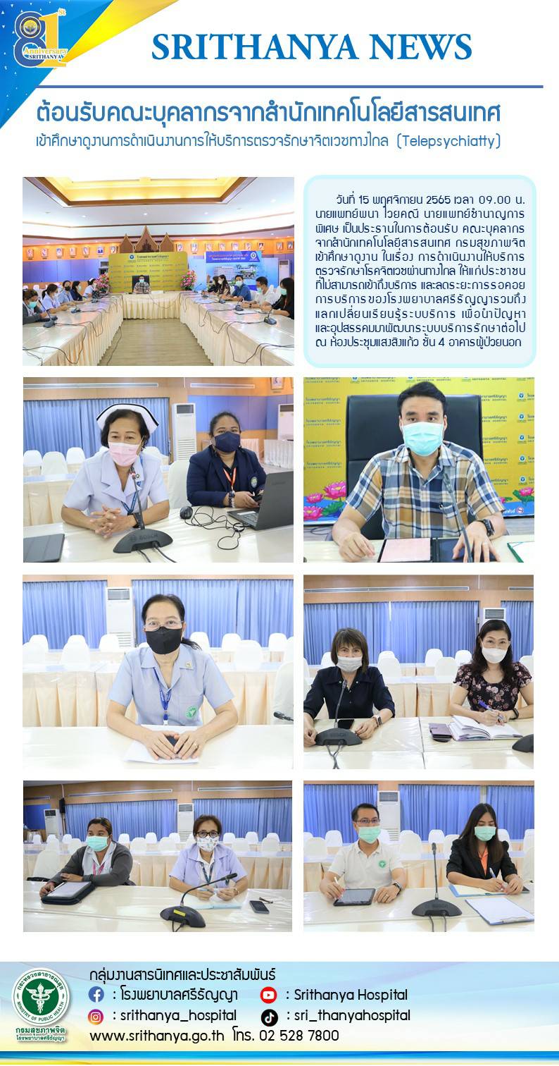 ดูงานการดำเนินงานการให้บริการตรวจรักษาจิตเวชทางไกล (Telepsychiatry) ณ โรงพยาบาลศรีธัญญา photos and movies