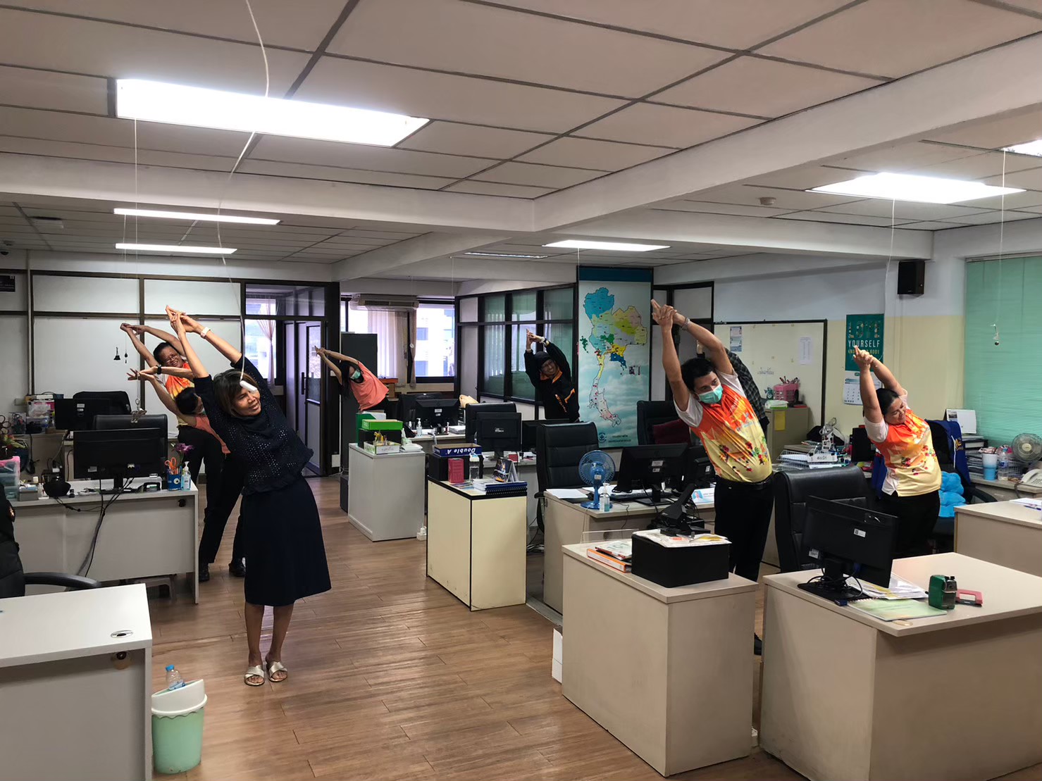 กิจกรรมยืดเหยียดระหว่างปฏิบัติงาน photos and movies