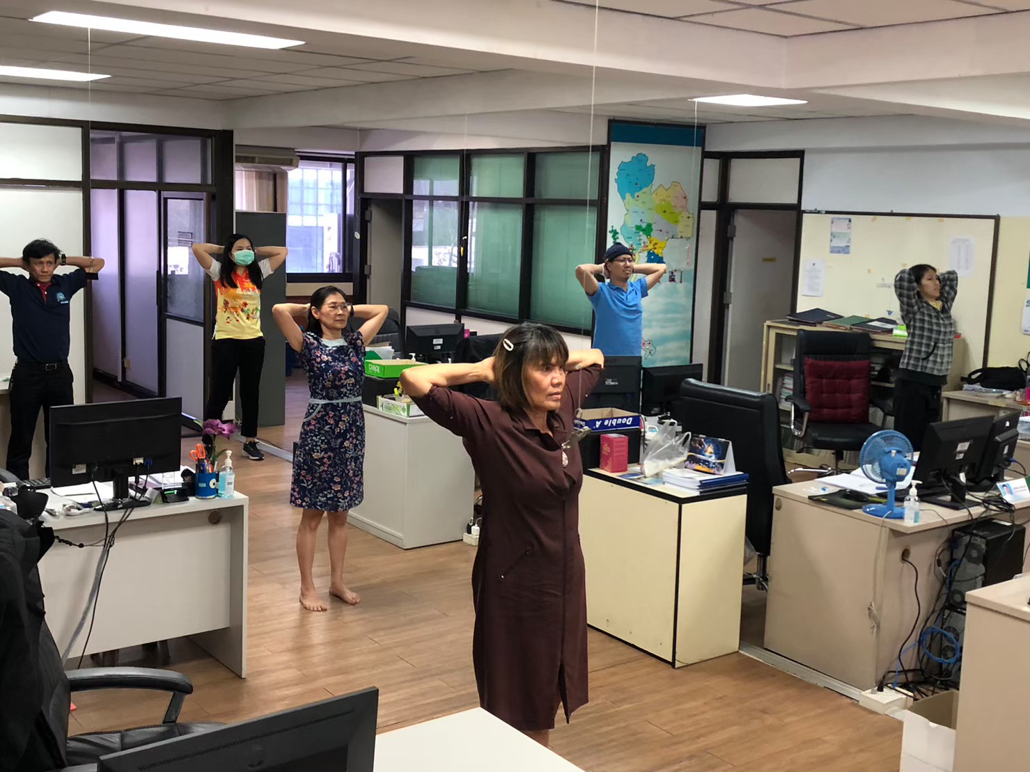กิจกรรมยืดเหยียดระหว่างปฏิบัติงาน photos and movies
