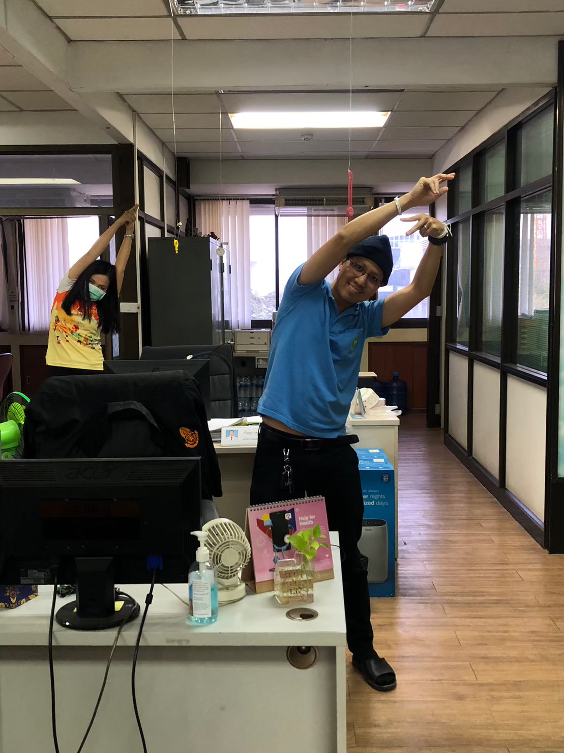 กิจกรรมยืดเหยียดระหว่างปฏิบัติงาน photos and movies