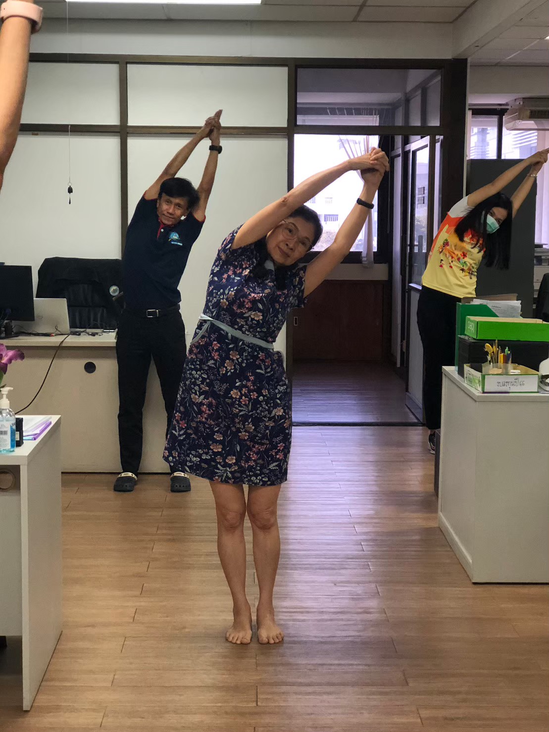 กิจกรรมยืดเหยียดระหว่างปฏิบัติงาน photos and movies